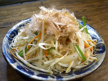 沖縄のおそうめんをツナ・ニンジン・タマネギ・ニラ・もやしで炒めました。生姜の風味が効いています。