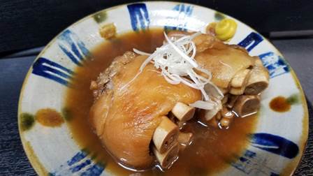 コラーゲンたっぷりの豚足です。泡ぐらのてびちは、臭みがなく、とても食べやすいので、ぜひ一度ご賞味下さい。